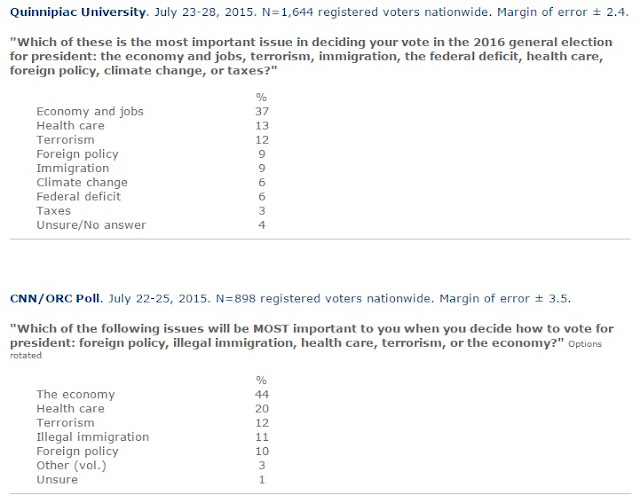 Here are the issues on voters minds in 2015. The economy and jobs is top and some of the candidates tried to talk about their records, but this wasn't even a topic of the 9:00 PM debate.